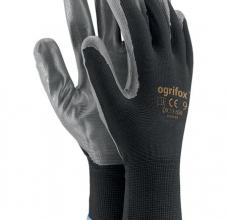 Rękawice ochronne powlekane nitrylem, zakończone dzianinowym ściągaczem. |