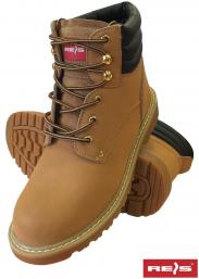 Skóra nubuck, wodoodporna, skórzana obwódka wokół kostki, języczek nad kostką ułatwiający wkładanie butów.