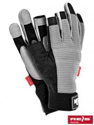 - miękka skóra syntetyczna na dłonicy, naszyta w kształcie chroniącym przed odgnieceniami w miejscach najbardziej na nie narażonych