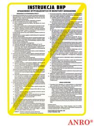 Instrukcja BHP „Instrukcja BHP stanowisk wyposażonych w monitory ekranowe”. - format znaku L w rozmiarze 250x350 - wykonany z płyty PCV