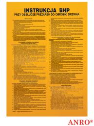 Instrukcja BHP „ Instrukcja BHP przy obsłudze frezarek do obróbki drewna”. - znak w rozmiarze 250x350 - wykonany z płyty PCV