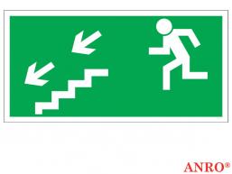 Emergency sign „Direction to emergency exit - down the staircase to the left”.