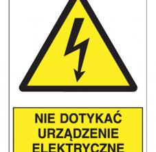 Znak elektryczny „Nie dotykać urządzenie elektryczne”. |
