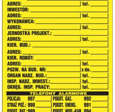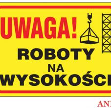 Tablice budowlane „Uwaga! Roboty na wysokości”. |