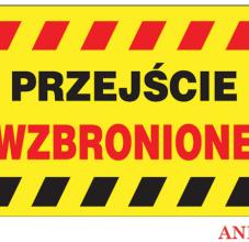 Tablica budowlana „Uwaga! Przejście drugą stroną ulicy”. |