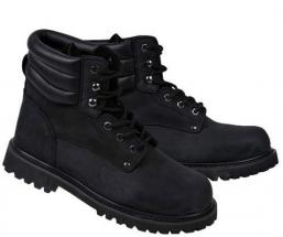 Skóra nubuck, wodoodporna, skórzana obwódka wokół kostki, języczek nad kostką ułatwiający wkładanie butów.