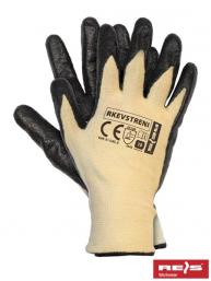 Rękawice ochronne powlekane wykonane z przędzy stretch-kevlar.