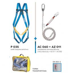 - szelki bezpieczeństwa P 03S z przednim i tylnym punktem zaczepowym, rozmiar M-XL lub XXL