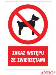 Znak BHP „Zakaz wstępu ze zwierzętami”.